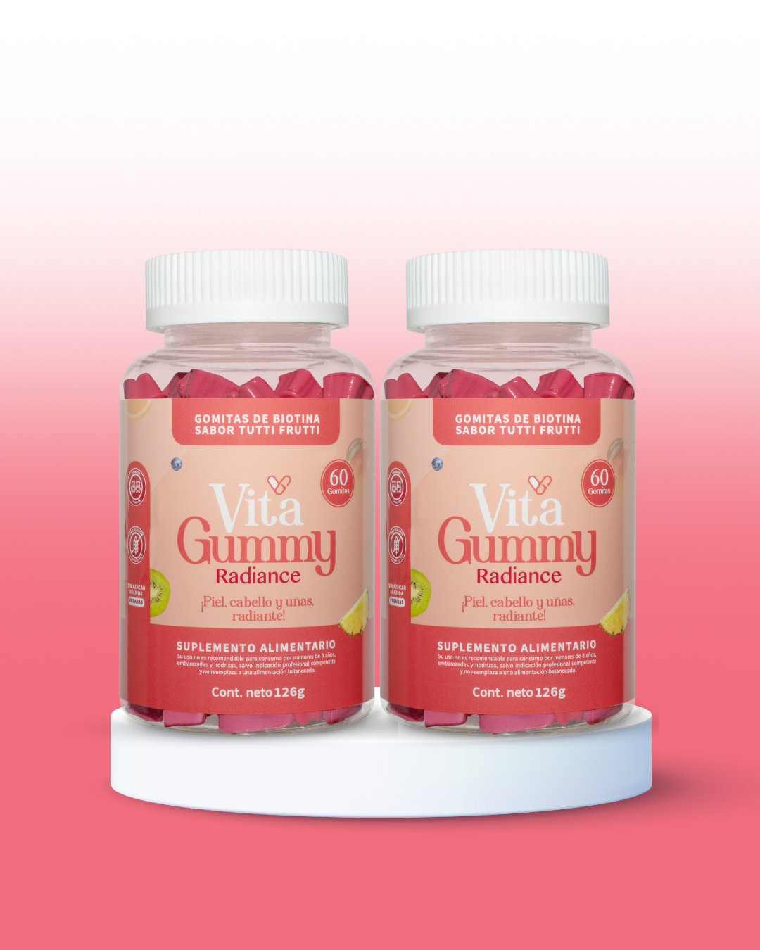 La verdadera belleza comienza con una buena nutrición. RADIANCE es un suplemento en formato gomita diseñado para quienes buscan potenciar la salud de su cabello, piel y uñas de forma natural, deliciosa y consciente. Formuladas con biotina y un poderoso complejo de vitaminas A, E y B12, estas gomitas son una forma sencilla de integrar bienestar a tu rutina diaria.